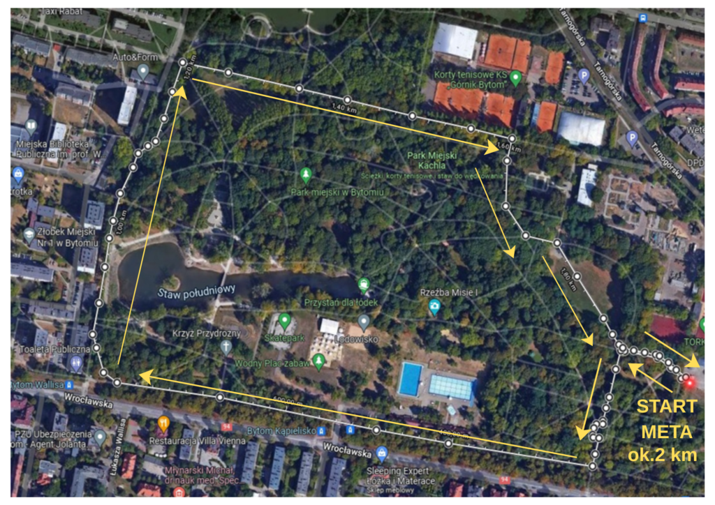Start oraz meta biegu zlokalizowane będą przy Amfiteatrze w Parku Miejskim im. hm. F. Kachla, a rozpoczęcie zaplanowano na godzinę 10:15. Przed biegiem, o godzinie 10:00, odbędzie się wspólna rozgrzewka dla uczestników.