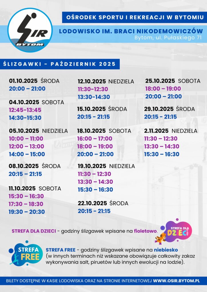 (telefon czynny od poniedziałku do piątku w godzinach 10:30-16:30 oraz w sobotę i niedzielę w godzinach trwania ślizgawek zgodnie z harmonogramem).